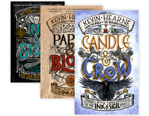 We follow Al’s life as he tries to discover who killed his previous apprentices (Ink and Sigil, Book 1), searches for a missing fellow sigil agent in Australia (Paper and Blood, Book 2), and navigates various paths to uncover how he was cursed (Candle and Crow, Book 3). Of course, the famous Druid Atticus O’Sullivan, along with his very good dogs (from the Iron Druid series, another one I recommend), makes appearances in a couple of these books.